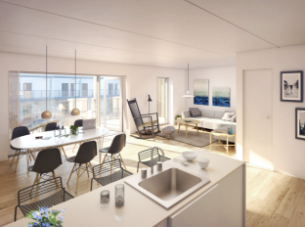 Du vil blive omgivet af både vand, grønne arealer og indkøbsmuligheder. At bo i denne bydel, er ensbetydende med, at man bliver en del af et mangfoldigt område, hvor der opføres en ny bydel, hvilket er lig med mange naboer.